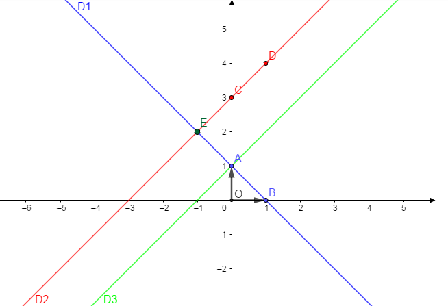La droite $(D_{3})$ est parallèle à la droite $(D_{2})$ donc elle a le même coefficient directeur 1.