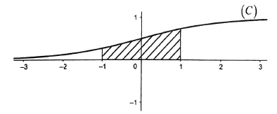 4. On représente ci-dessous la courbe $(\mathcal{C})$ de la fonction $f$ dans le plan muni d'un repère orthonormé d'unité graphique $2\,cm.$