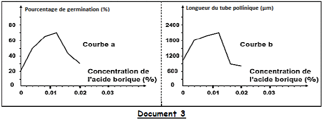 Pour déterminer le rôle de l'acide borique au niveau du stigmate, les résultats des expériences sont représentés dans le document 3.