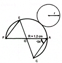 On considère le cercle de centre $O$ et de rayon $R=1.2\,cm$