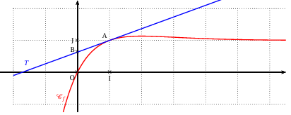 au point $A$ d'abscisse $1$ coupe l'axe des ordonnées en un point noté $B.$