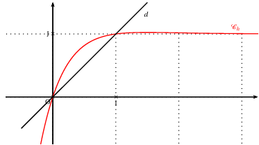 On note $\mathbb{C}_{h}$ la courbe représentative de la fonction $h$ et $d$ la droite d'équation $y=x$