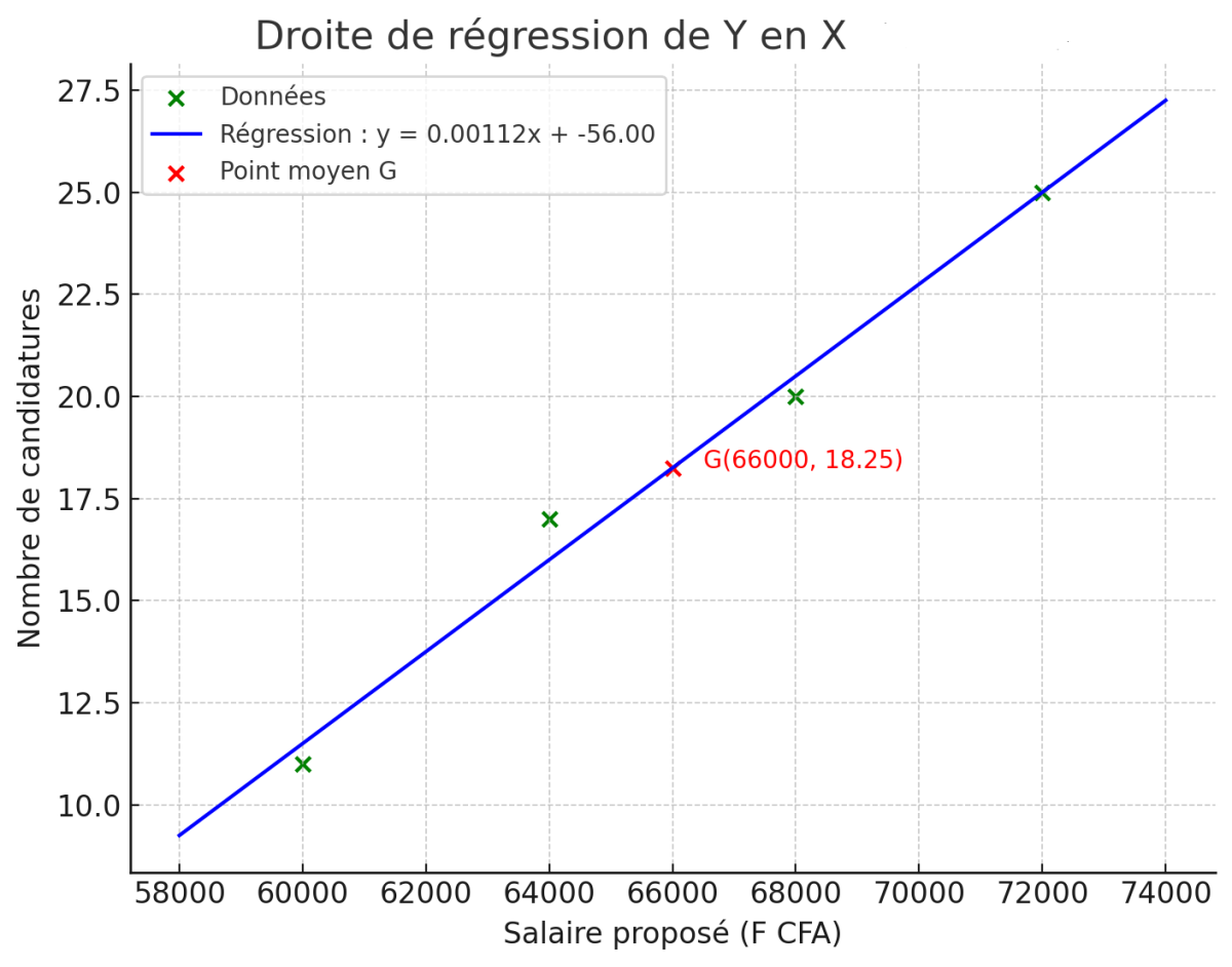 Et la droite de régression de $y$ en $x$ est donnée par :
