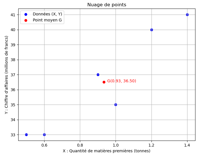 Point moyen $G(\bar{x}, \bar{y})$ :