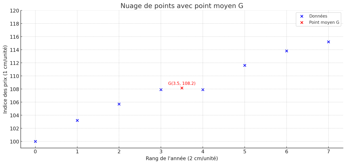 - 1 cm → 1 rang sur l'axe des abscisses.