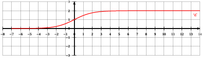 Ceci montre que la droite d'équation $y=2$ est asymptote horizontale à la courbe $\mathbb{C}$ en $\infty$