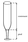 un pied, en verre plein, et un contenant de $12.5\,cl$