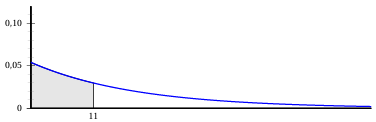On sait que l'aire est égale, en unité d'aire, à l'intégrale de la fonction densité sur l'intervalle $[0\ ;\ 11]$, soit :