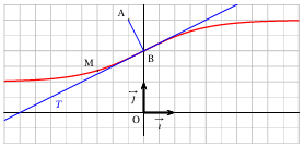 b. Soit $T$ la tangente à la courbe $\mathbb{C}_{f}$ au point $B$