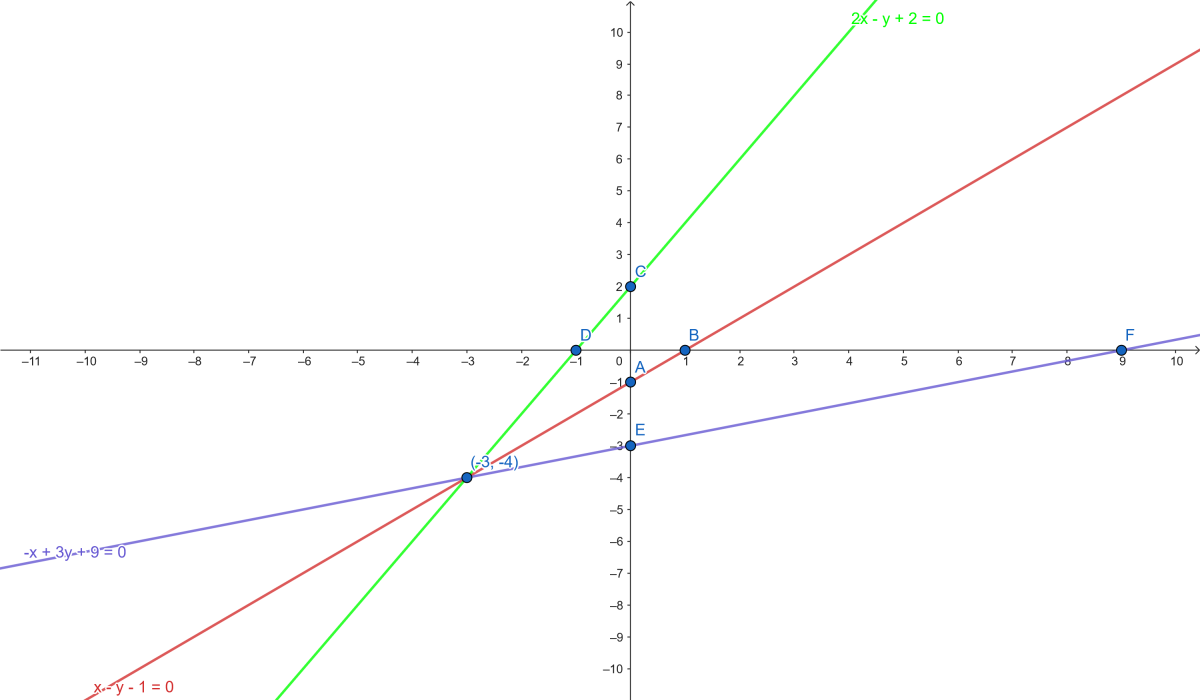 Les 3 droites se croisent au point $(-3,-4)$ qui est la solution du sytème