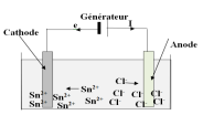 5. C'est le phénomène de surtension qui « déplace » les couples et conduit à « remplacer » la réduction de l'ion hydrogène $H$ (la réaction prévue) par la réduction de l'ion étain $(II)$