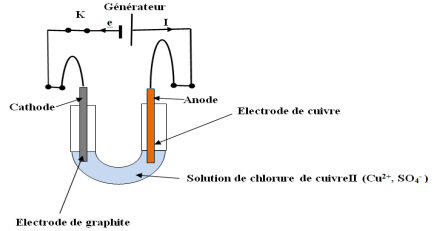 1 -a-Il faut relier l'électrode en graphite à la cathode et l'électrode en cuivre à l'anode