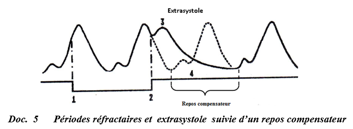 Cette extra systole est suivie d'une diastole plus longue que la normale : c'est le repos compensateur (Doc. 6).