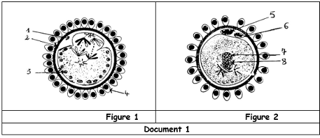 La figure $1$ du document $2$ ci-dessous illustre un stade de l’ovogenèse chez la femme, et la figure $2$ représente une étape de la fécondation (pour simplifier, le nombre des chromosomes est réduit à $2n=4$)