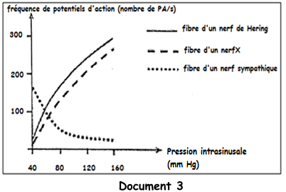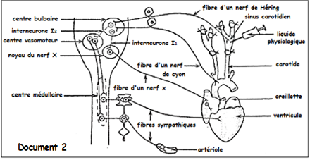 3. En te fondant sur le document $2$ et les informations tirées précédemment, explique le mécanisme nerveux de la régulation de la pression artérielle, à la suite d'une hypertension.