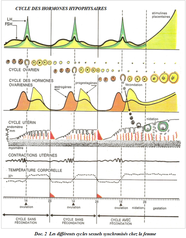 Commentaire des schémas : synchronisme des cycles sexuels