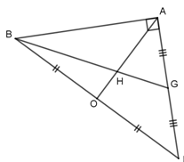 $9)\text{ Sur la figure ci-contre,}BAK\text{ est un triangle rectangle isocèle en }A\\\text{ Les points}G\text{ et }O\text{ sont les milieux respectifs de}[AK]\text{ et } [BK].\text{Les droites}(OA)\text{ et } (BG)\\\text{ se coupent en } H.\text{ Le rapport de l’homothétie de centre } H\text{ qui transforme }O \text{ en }A \text{ est :}$