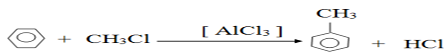 $C_{6}H_{6}+C_{2}H_{5}-CI\longrightarrow^{\lim\limits A1C1_{3}}C_{6}H_{6}-C_{2}H_{5}+HCI$