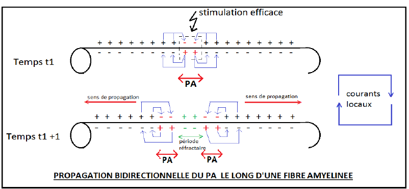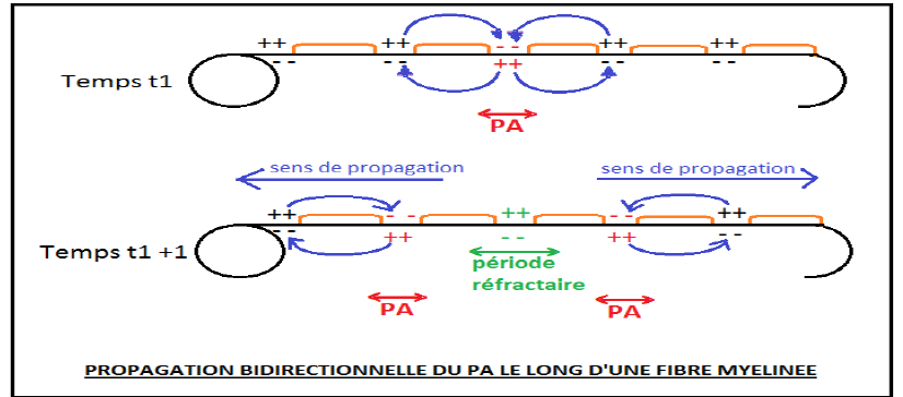 Par un texte illustré nous allons rappeler le mécanisme de la propagation du PA puis nous expliquerons la non réversibilité de l’influx.